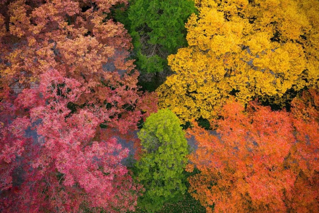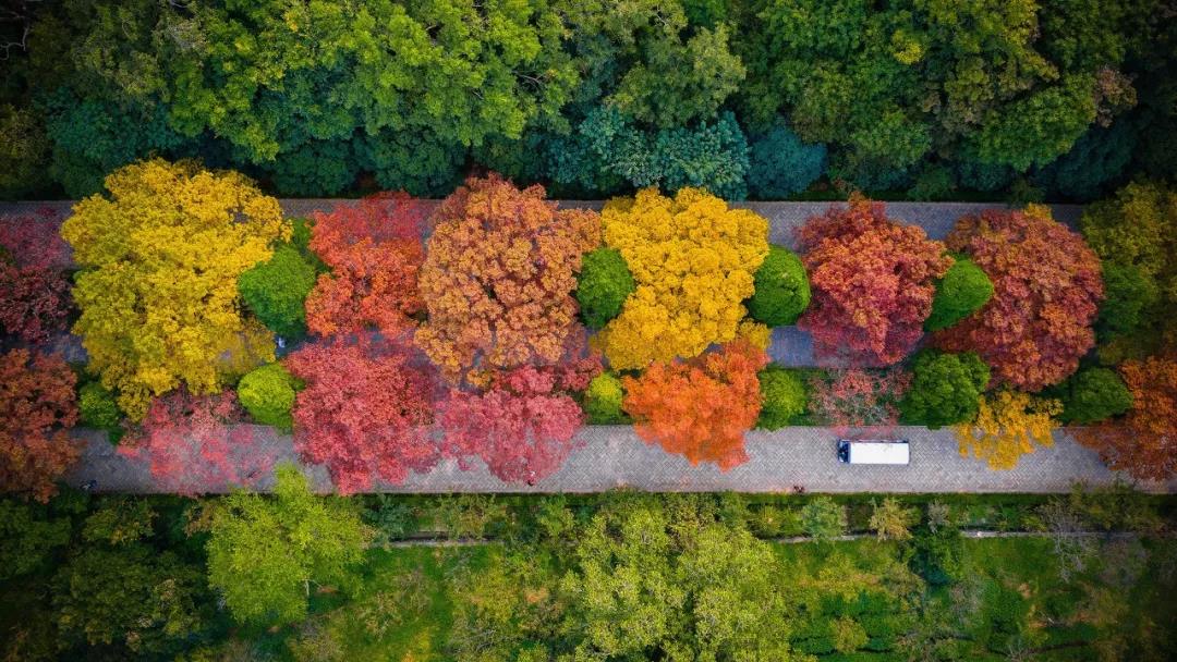 紅葉黃葉飄滿路,秋的顏料盒就在這里被徹底打翻。